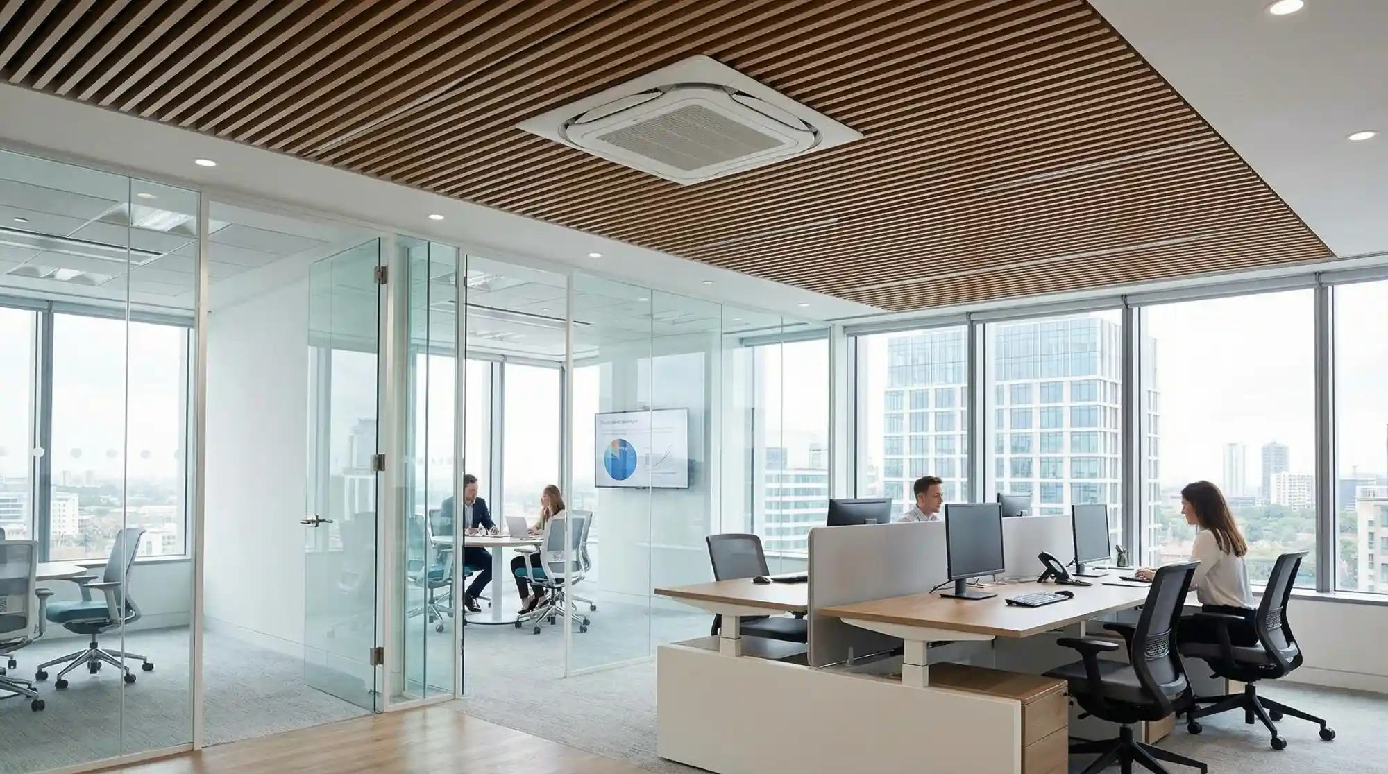 Implementamos sistemas de aire acondicionado para oficinas corporativas que combinan confort, control preciso de temperatura y alta eficiencia energética para entornos empresariales.